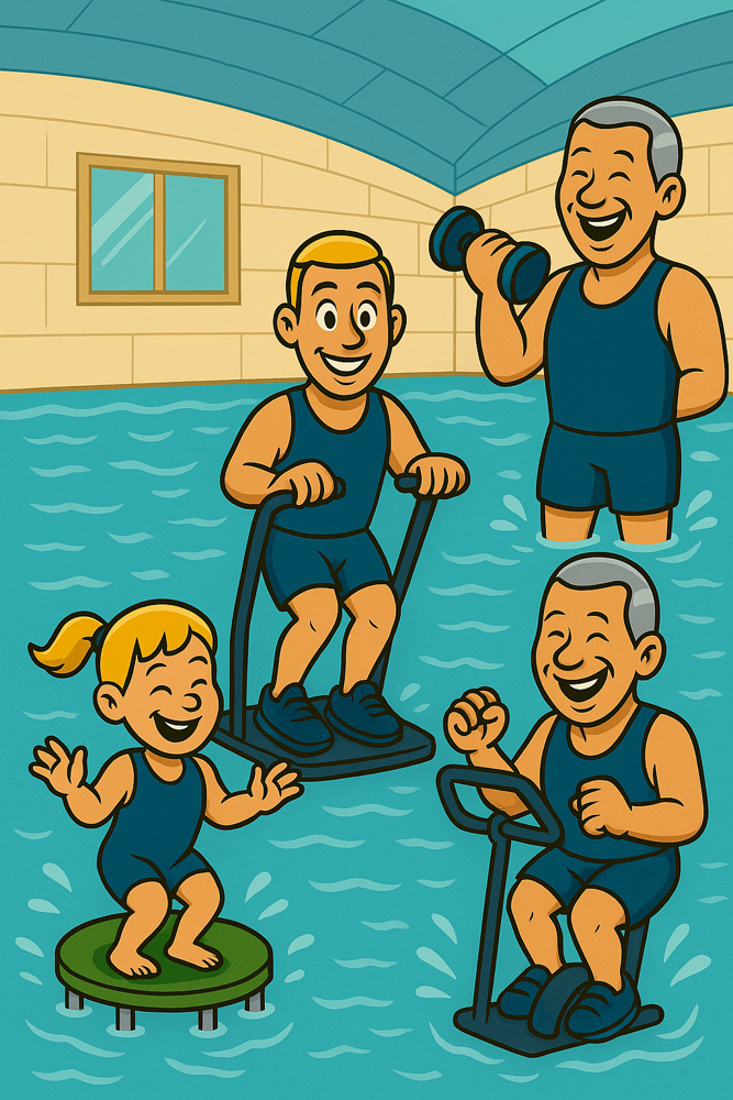 På vores Aqua Fitness-hold får du pulsen op, styrket musklerne og samtidig skånet led og knogler. Træningen foregår både i vand og på land, og er bygget op som stationstræning, hvor du bevæger dig rundt mellem forskellige øvelser og redskaber, der udfordrer både kondition, styrke og smidighed.